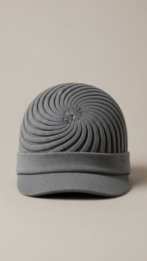 Feel the subtle lift of the Spiraled Top Four-Stitch Hat as its neat four-stitch motif sweeps upward into a refined spiral, giving your silhouette a sleek, contemporary edge. You’ll enjoy crisp helix decreases that sculpt the shape while preserving crown symmetry, making the hat both modern and balanced. It’s minimal, aerodynamic, and lets you move freely with confident, understated style.