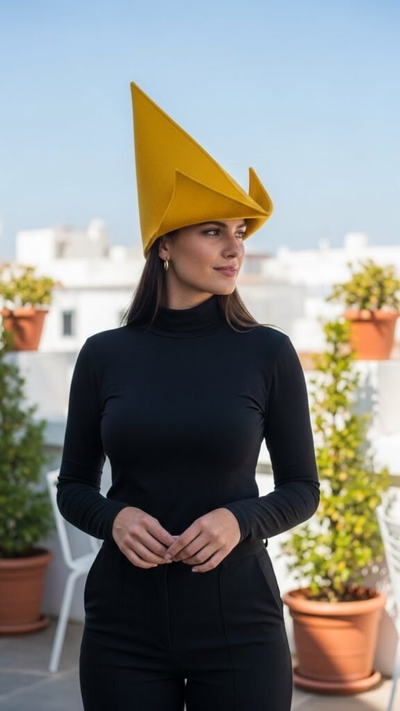 You’ll love the pointed silhouette that skims your crown, merging minimalist construction with bold Pixie styling. Knit it in soft wool or a breezy cotton blend to express independence, move freely, and keep your look spirited without fuss.