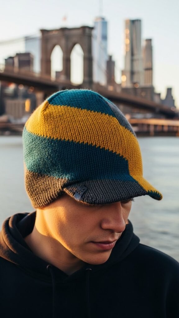 You’ll choose yarn selection mindful of drape and durability, control stitch tension for even ribs, and finish with a minimal crown so you move freely, stylish and unfazed.