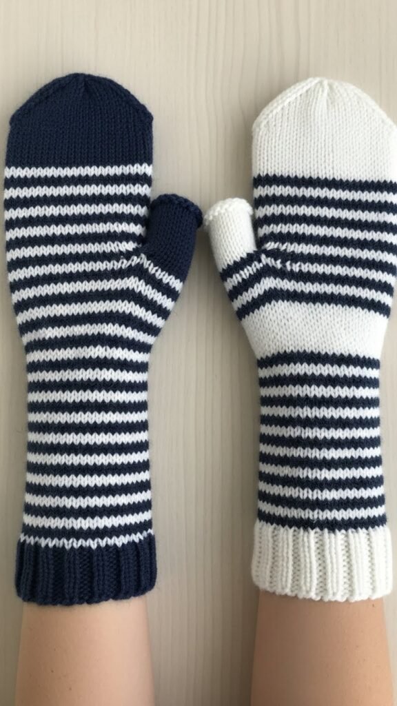 You’ll follow a simple pattern: fingering yarn, tapered wrist decreases, and a neat thumb gusset. Finish edges hand sewn for durability and precise color matching when you stripe. The result’s elegant, freeing, and made to move with you.