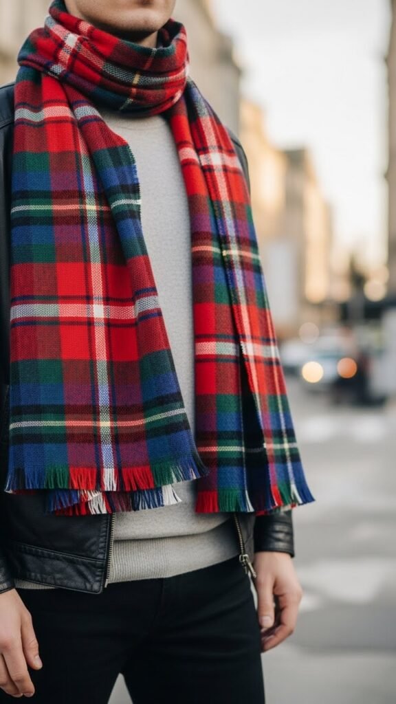 You’ll feel Fraser heritage in every stitch, a nod to clan symbolism reimagined for city life. Wear it loose or wrapped tight; it frees your look, pairs with leather or wool, and keeps your movement effortless.