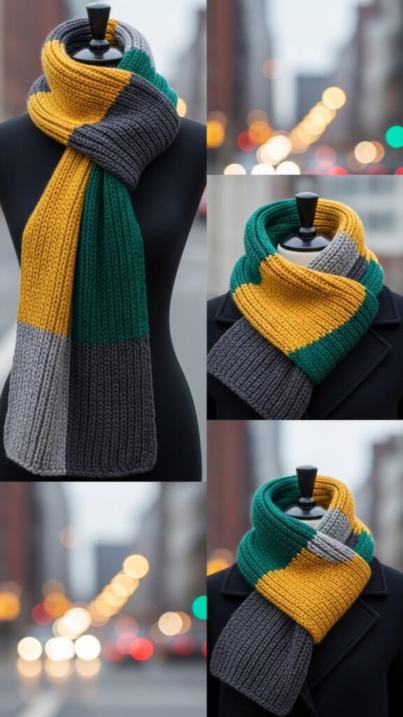You’ll love how textured ribs create sculpted warmth without bulk. Choose bold yarns and simple repeats for a versatile, wearable piece.