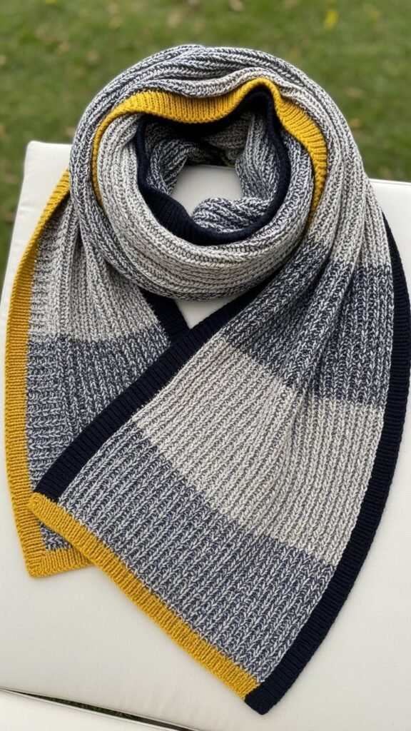 Keep edge treatments simple — slipped stitches or tidy selvedges — so your scarf feels liberated, wearable, and confidently understated.