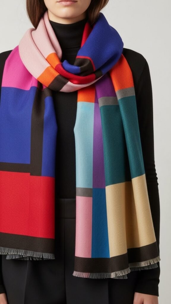 With bold swaths of contrasting hues, a colour block scarf turns a simple outfit into a statement — you’ll grab it when you want instant polish without fuss.
