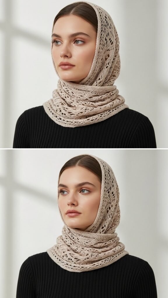Swap bold blocks for delicate openwork and you’ll find the Luxury Lacy Snood—an elegant, airy loop that lifts an outfit with refined femininity.