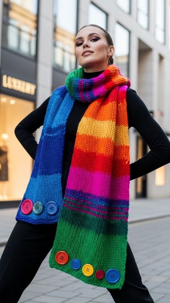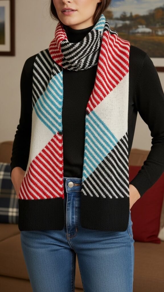Cut a bold line through your outfit with the Directional Stripes Scarf, a sleek accessory that uses angled stripes to elongate the frame and add modern movement. You’ll choose angled chevrons and color-block panels to guide sightlines, pairing contrast edges for crisp definition.