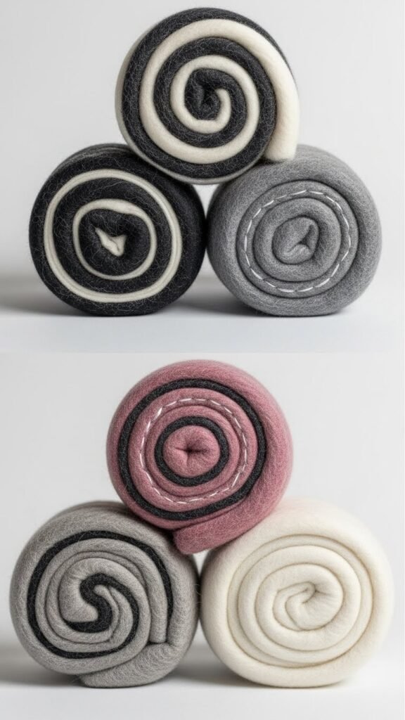 Felted scraps compress into dense acoustic panels for studios or shared rooms, and you can stitch padding inserts to cushions, doors, or boxes.