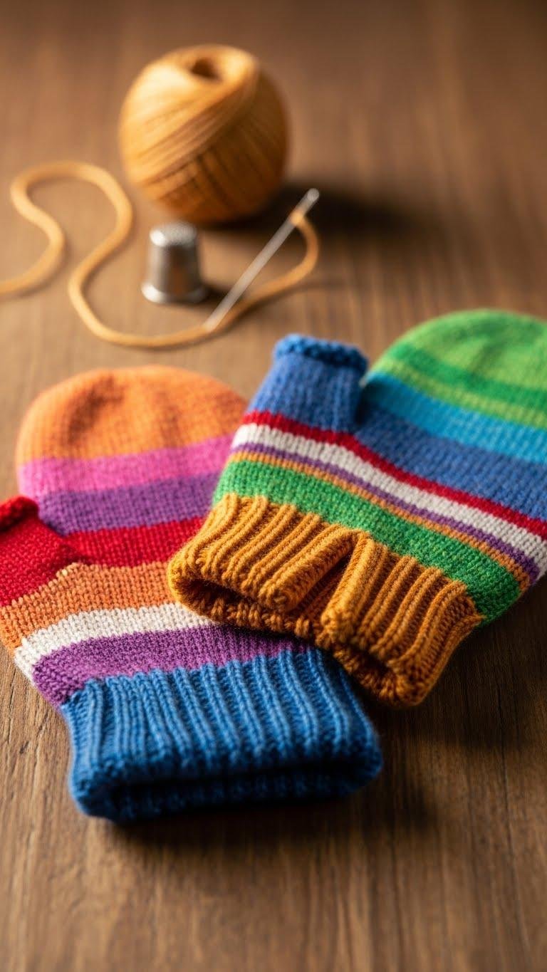 If you’ve just finished a beanie, the leftover sweater sleeves are perfect for making fingerless gloves — a quick, low-waste project that keeps your hands warm while leaving your fingers free.