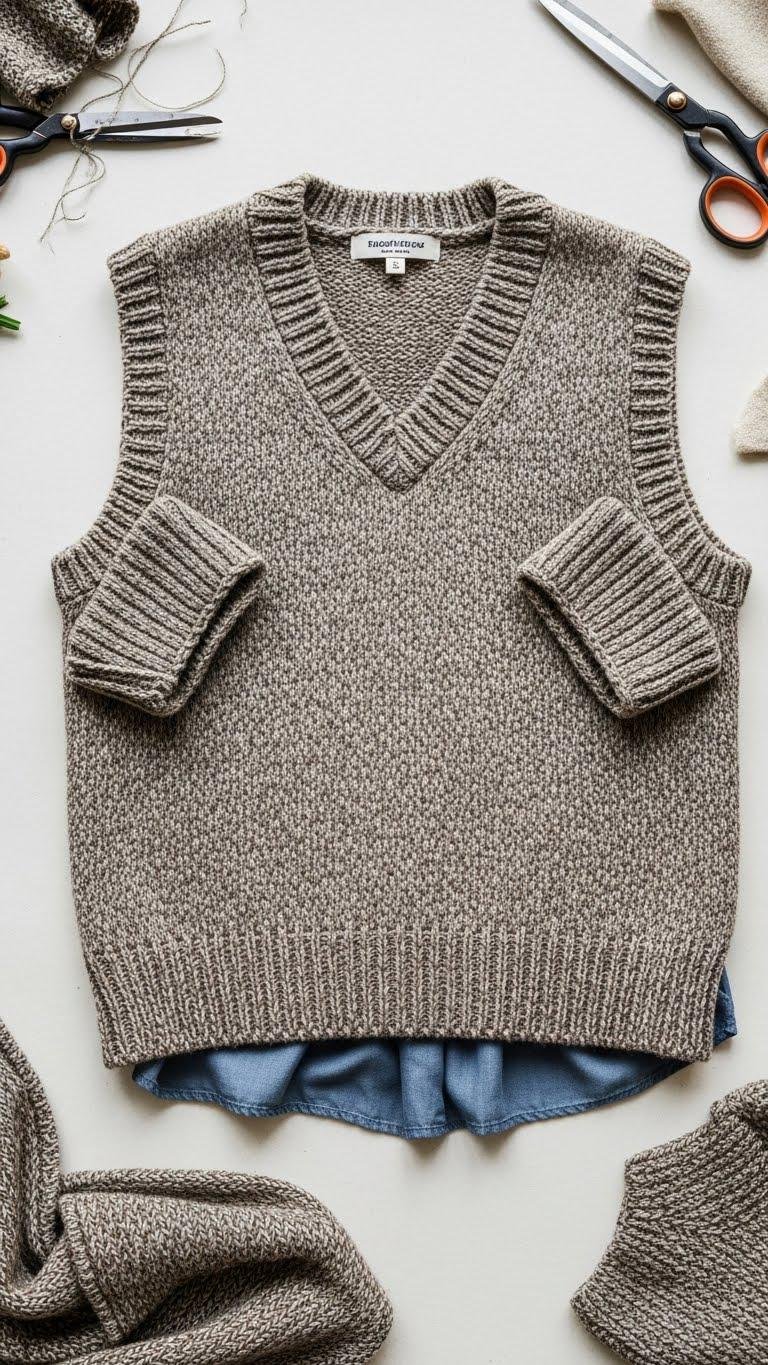 You’ll trim sleeves, refine armhole finishing with a narrow hem or ribbing, and adjust fit through simple waistband shaping.