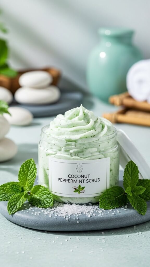 Frequently, whipped coconut peppermint scrub gives you a luxuriously creamy exfoliant that melts into the skin while delivering gentle mechanical buffing and cooling peppermint refreshment. You’ll blend fine sugar, whipped coconut oil and a few drops of peppermint for balance, test pH, and control texture. Consider scent pairing and minimalist packaging ideas to preserve aroma, safeguard hygiene, and support your freedom to customize.