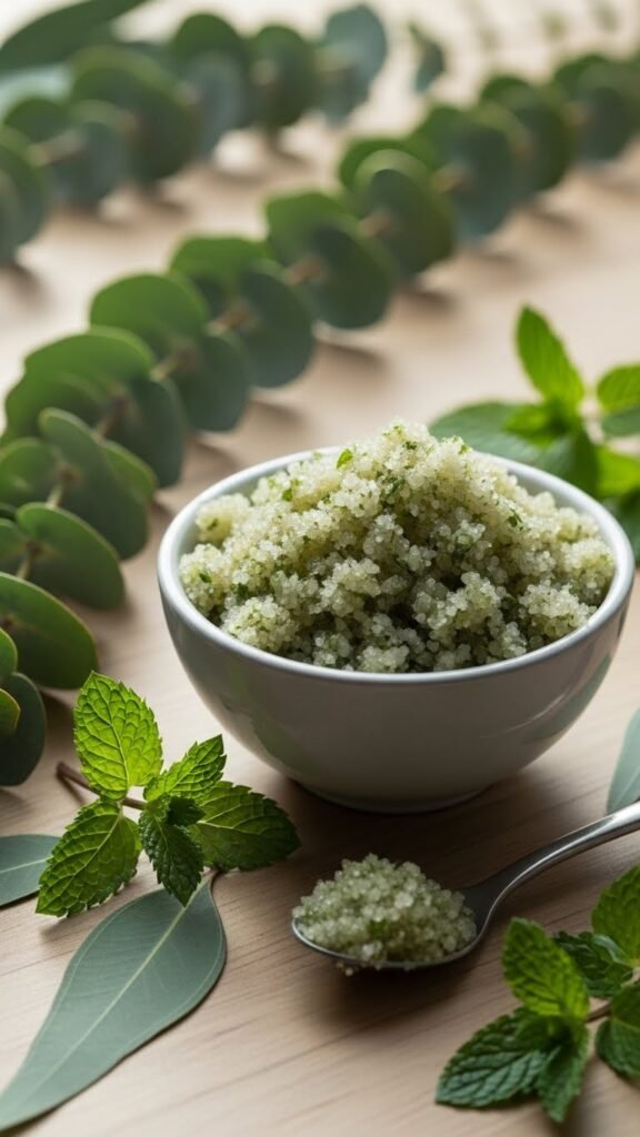When you need an invigorating boost for tired skin, the Peppermint Eucalyptus Reviving Scrub delivers cooling clarity and gentle exfoliation in one ritual: finely ground sugar buffs away dead cells while a balanced ratio of peppermint and eucalyptus essential oils clears congestion and stimulates circulation.