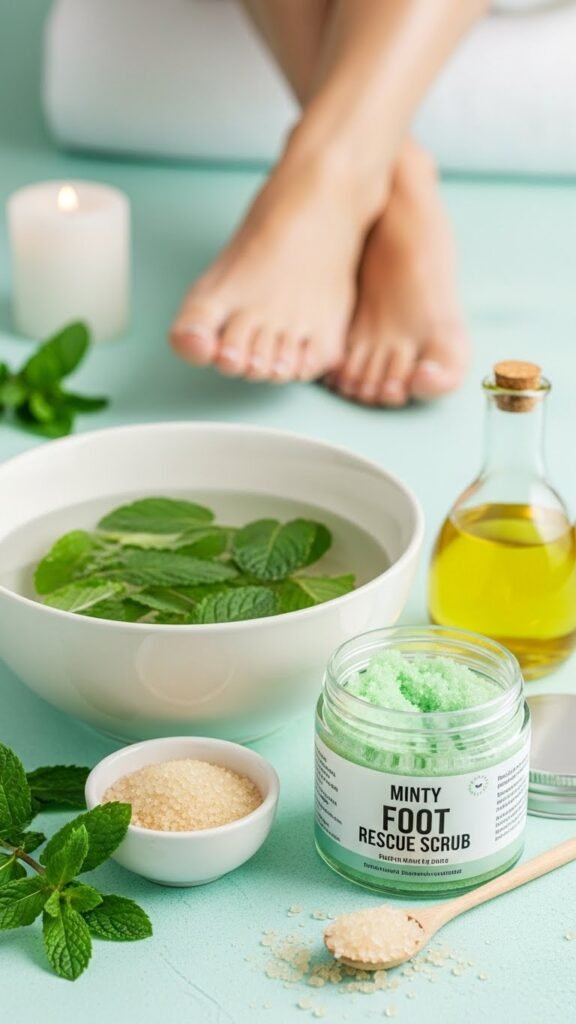 When your feet feel rough and fatigued, a Minty Foot Rescue Scrub with peppermint revives skin and soothes tired muscles while gently removing callused cells. You’ll blend sugar, peppermint oil, and light oil for exfoliation and hydration, then perform a focused peppermint pedi: scrub, rinse, and finish with a cooling massage to relieve tension and lock in moisture for liberated, comfortable movement.