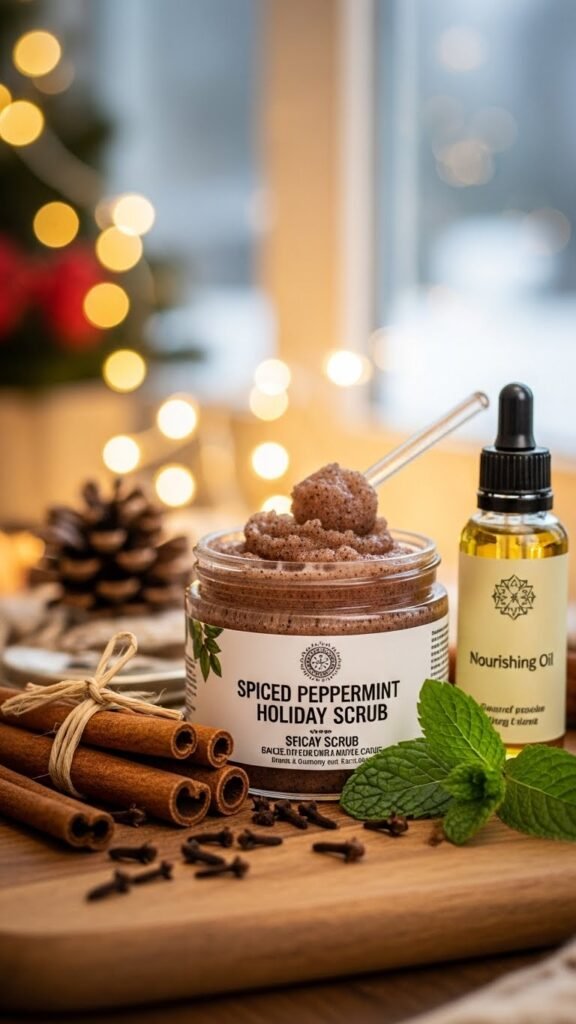 Although it evokes holiday warmth, the Spiced Peppermint Holiday Scrub delivers targeted skincare benefits by combining invigorating peppermint with gentle cinnamon and clove exfoliants that boost circulation and provide mild antimicrobial support.