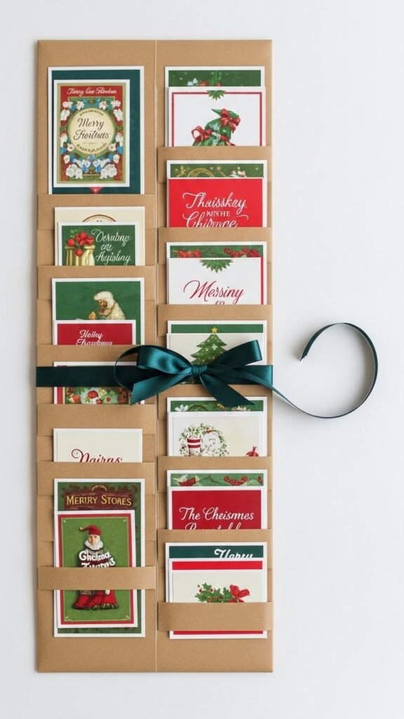 Turn card fronts into charming mini bunting you can string across a mantel, package, or holiday tree. Cut uniform mini pennants from sturdy designs, punch holes at tops, and thread twine for a clean, portable garland.