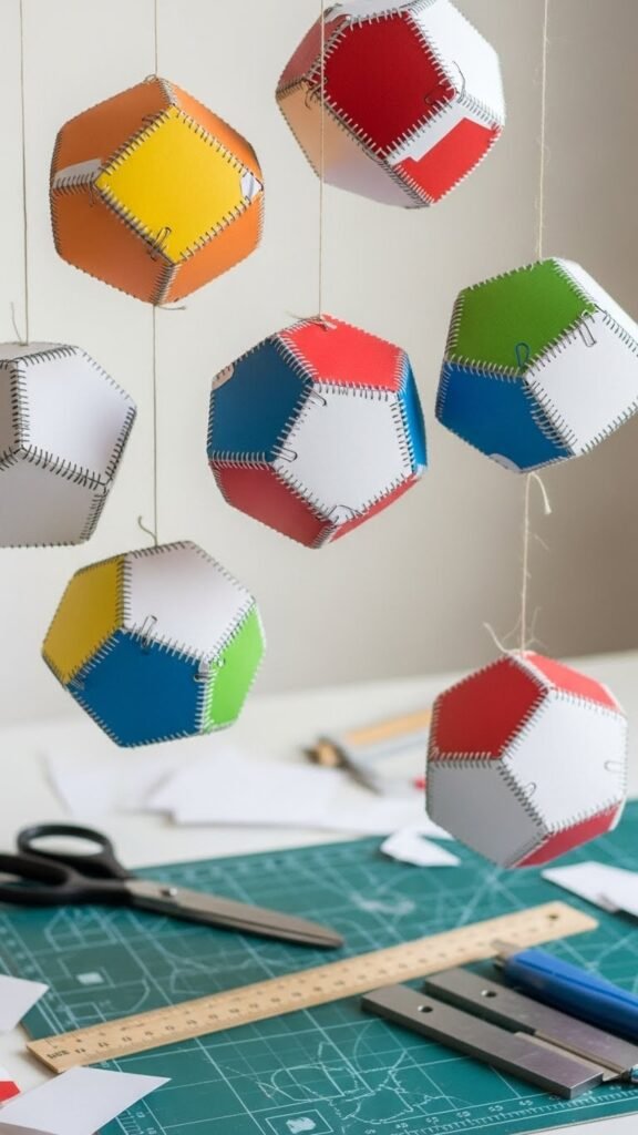 You’ll measure, score, and crease panels to form clean planes, then join units into polyhedra. Use twine or wire to hang as origami ornaments or cluster several for airy geometric mobiles that feel modern, lightweight, and liberating.