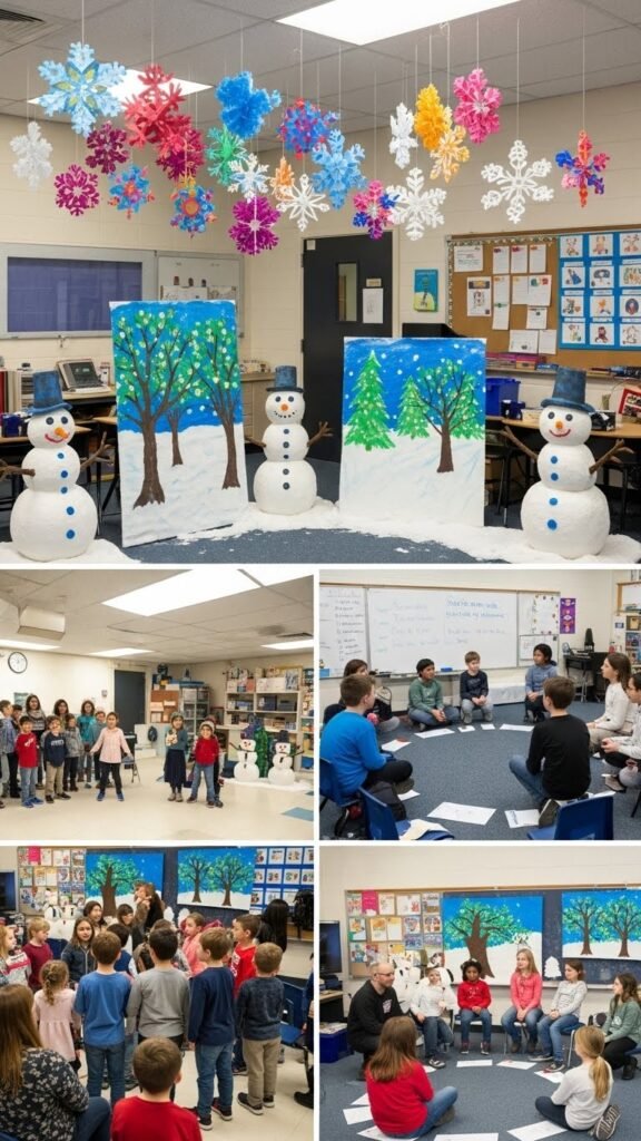 When students transform the classroom into a Winter Wonderland Showcase, you’ll see their creativity on full display as handmade snowflakes, painted backdrops, and sculpted snowmen line the walls and ceilings.