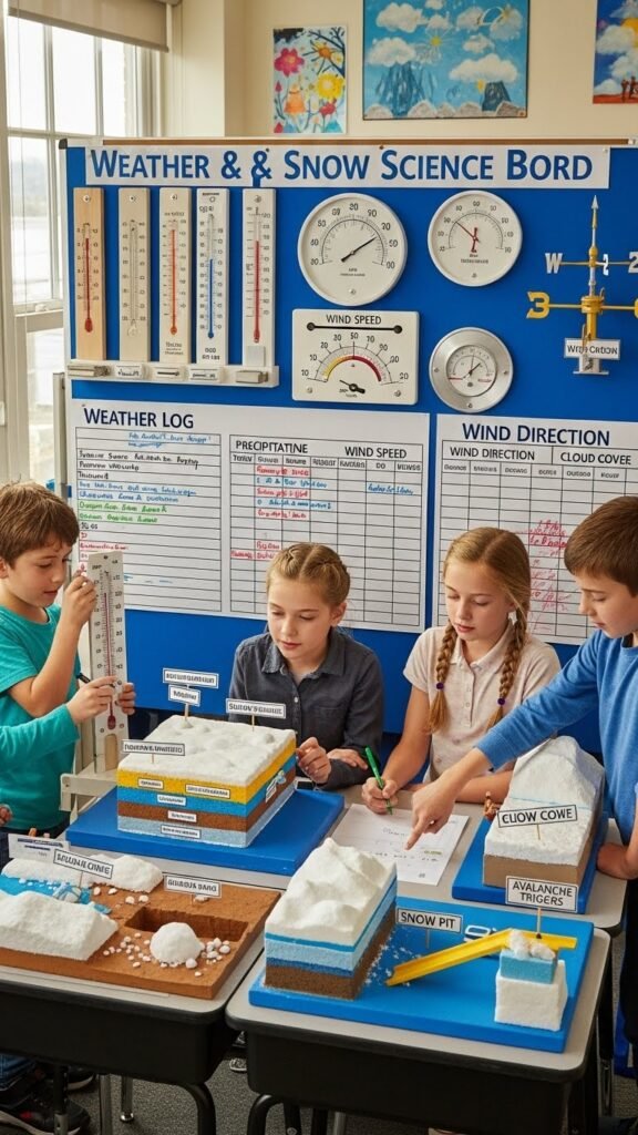 When you set up an Interactive Weather and Snow Science Board, students get a hands-on way to observe, record, and predict winter weather while having fun with experiments and visual tools.