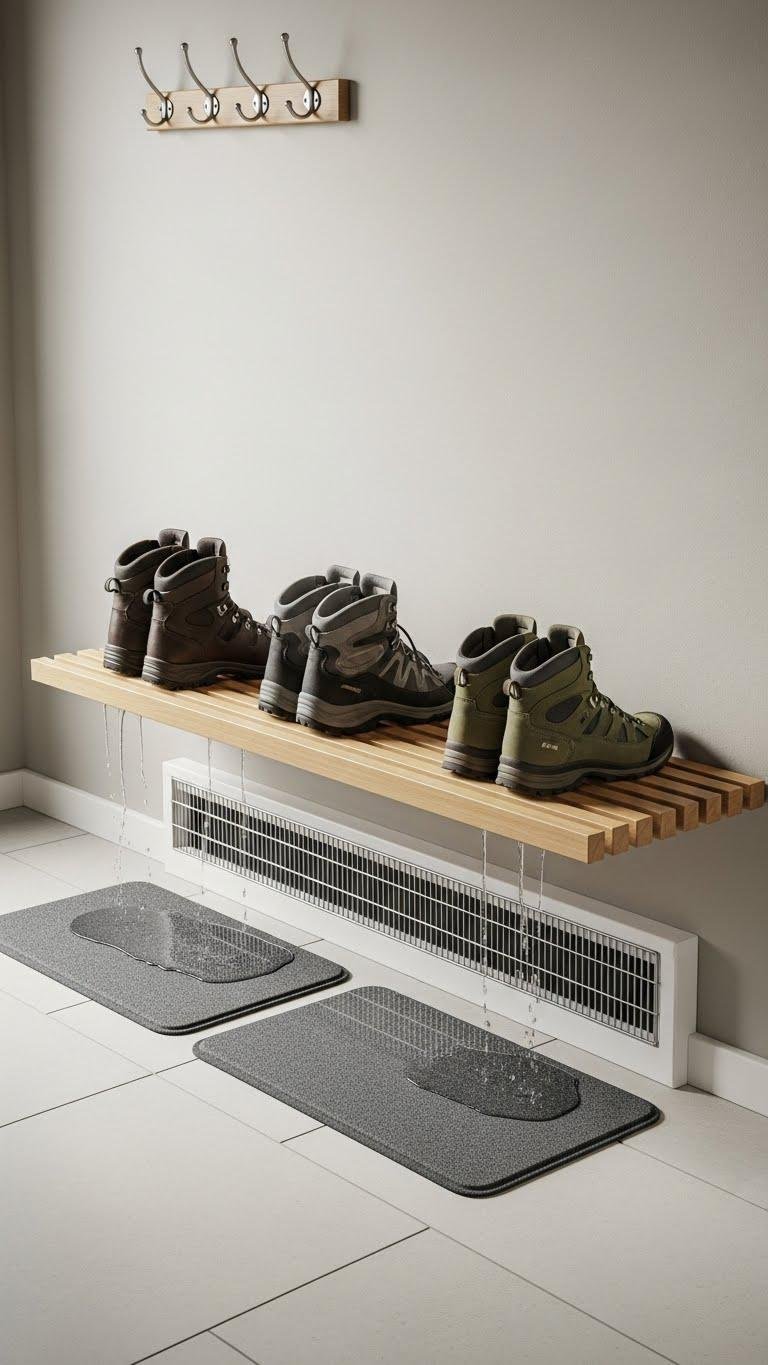 If you set aside one empty shelf near an entryway or heater, you’ll have a dedicated spot to dry wet boots without cluttering living spaces or mixing damp items with clean gear. Use open shelf ventilation, space boots toe-out, and place absorbent mats below.