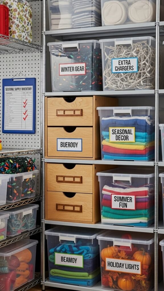 Assign colors or icons for winter gear, extra chargers, and decor. Keep a simple inventory list near storage for rapid retrieval.