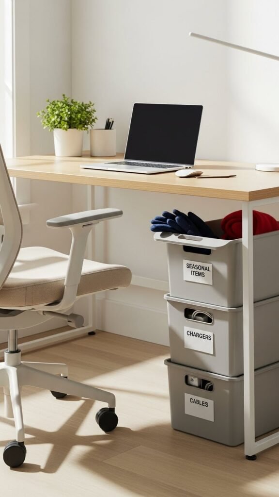 Store Rarely Used Items in Under-Desk Bins