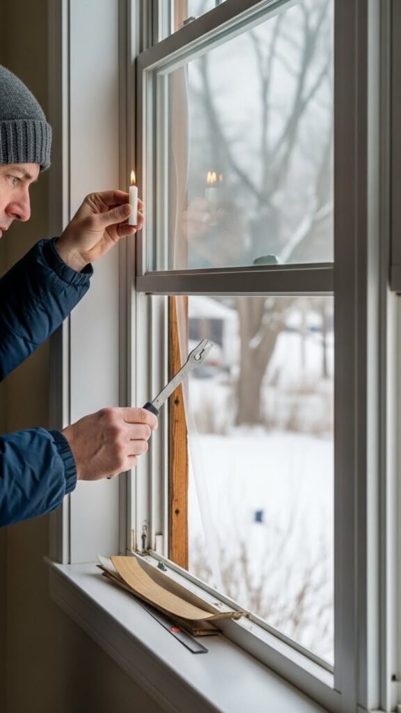 Start by walking the perimeter of your doors and windows on a cold, windy day—you’ll feel or hear most drafts immediately—and note gaps, worn weatherstripping, and loose frames. Use simple draft detection: a lit candle, smoke pen, or infrared thermometer. Inspect each window sash for movement and seal failures. Prioritize fixes by heat loss estimates, replace weatherstripping, and caulk gaps for measurable savings.