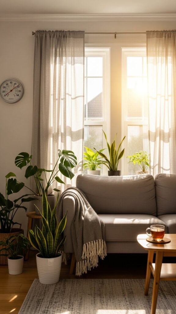 Frequently, simply opening south-facing curtains during daylight captures free solar heat that cuts your heating needs. You’ll increase solar gain, lowering thermostat runtime and energy costs.