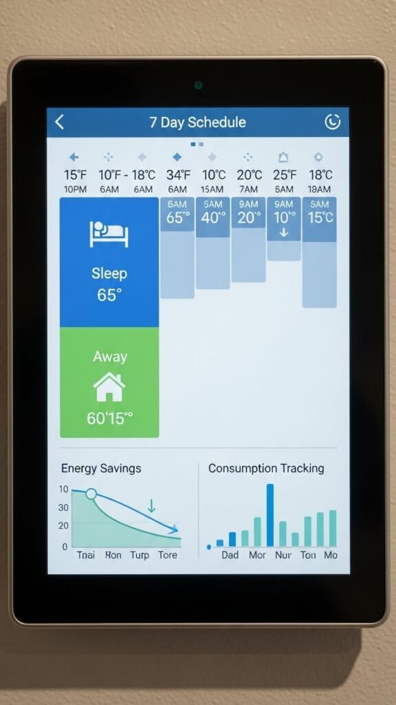 Use a modest sleep setback overnight and an away setback while you’re gone; small, consistent drops cut usage markedly.