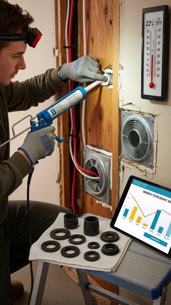 Sealing vents and closing doors helps, but leaks around cables, dryer vents, and other penetrations can still let warm air escape and cold drafts in—accounting for a surprising share of heat loss in many homes.