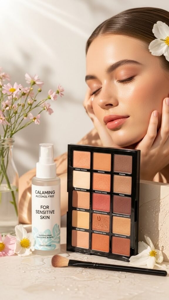 After softening your eye look, seal everything with a setting spray formulated for sensitive skin to lock in hydration and prevent flakes or irritation.