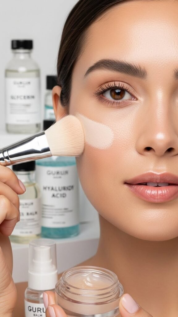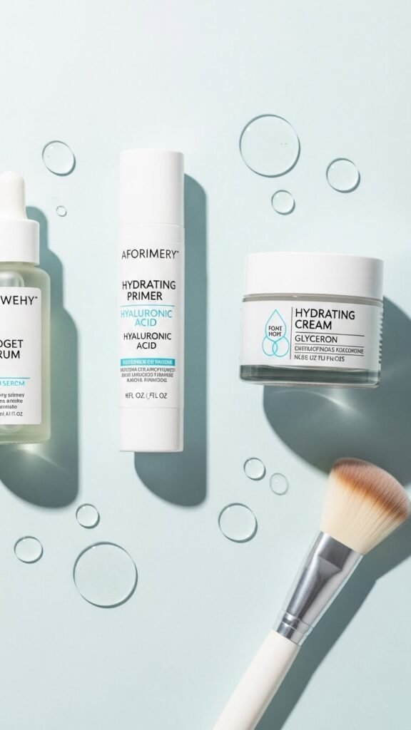 While you don’t need to splurge to get real hydration, choose primers and creams that lock in moisture without feeling heavy so makeup sits smoothly all day. Pick drugstore primers with hyaluronic acid or glycerin, and layer lightweight budget serums under your cream for added dewiness. You’ll protect skin from cold, extend foundation wear, and keep your look fresh without breaking the bank.