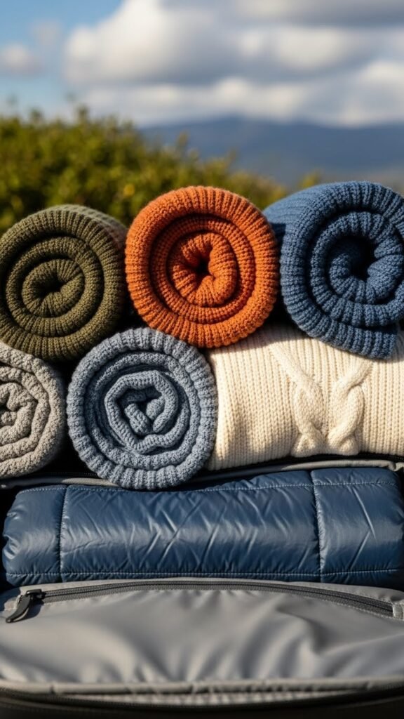 Pack a few versatile knits in capsule colorways so you can mix, match, and move freely. Roll them to save space and swap layers as plans change.
