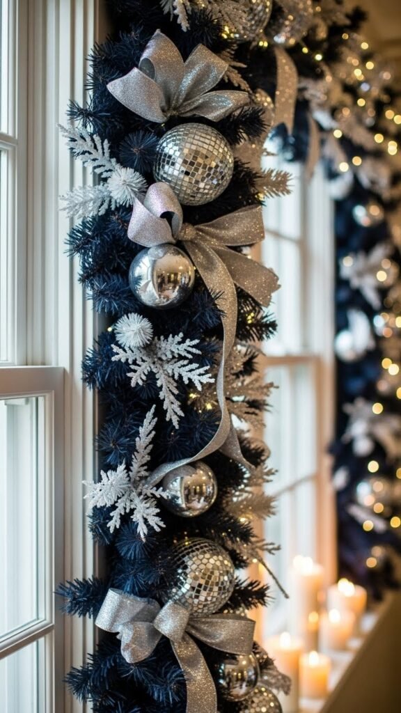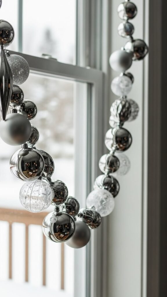 Brighten your window with a garland that pairs festive red accents and sleek silver highlights, creating a modern-yet-cozy focal point for chilly afternoons.