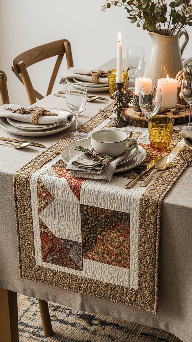 When you layer a quilted runner over your neutral base, you add instant warmth and tactile interest that pulls the whole woodland scene together. Choose heirloom quilts or modern pieces with thermal batting for insulation and texture.