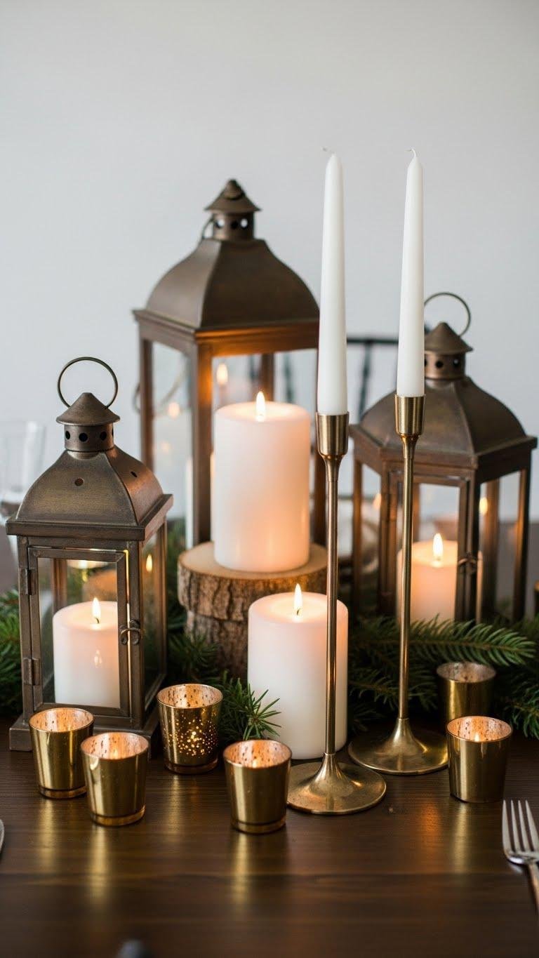 Incorporate Lanterns and Metal Candle Holders for Contrast